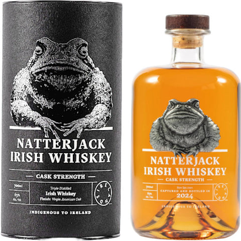 This is the 2024 release cask strength whiskey from Natterjack Irish Whiskey. Made from a blend of 20% malted barley and 80% corn and aged in former bourbon barrels before finishing in virgin American oak. Bottled at 63%.