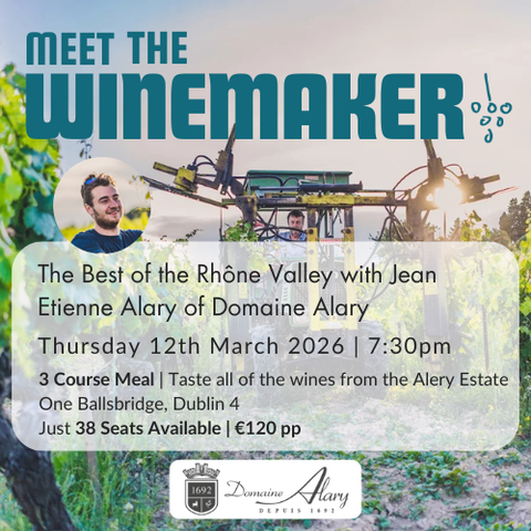 On Thursday March 12th, WineOnline.ie will have the pleasure to welcome Jean Etienne Alary of Domaine Alary in Cairanne, in the Rhône Valley to Dublin. This is one of the top leading estates in the whole of the Rhone valley and we are extremely excited to bring Jean Etienne to Dublin for this one off event. Jean Etienne is leading the winemaking at the estate with the seady hand and watchful eye of his father who has tended thee land before him. They are a great team and love working together. Jean Etienne has brought a modern twist to the winemaking at the estate and is wholly supported by Denis. The wines are showing a freshness and a purity of fruit , owing to the presentation of the terroir above all else in each wine he produces. The Wines are amazing!