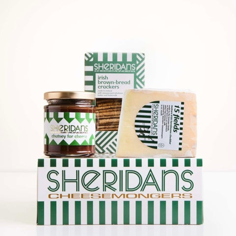 The Sheridans Cheese Box comes complete with everything you need to accompany a great wine - A fine 15 Fields Cheddar, Sheridans artisan Brown Bread Crackers and a jar of specially made Sheridans Chutney for cheese. All combined in a little Sheridans Mini hamper box with straw!